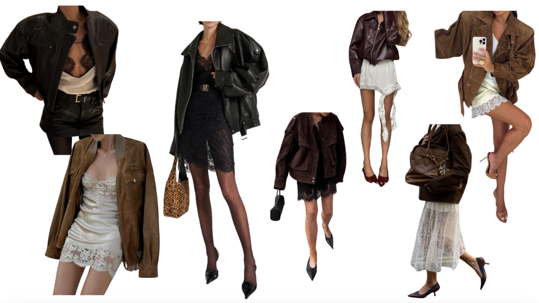 1) Voluminous Bomber (Leather or Suede) + Fine Lace Silhouette